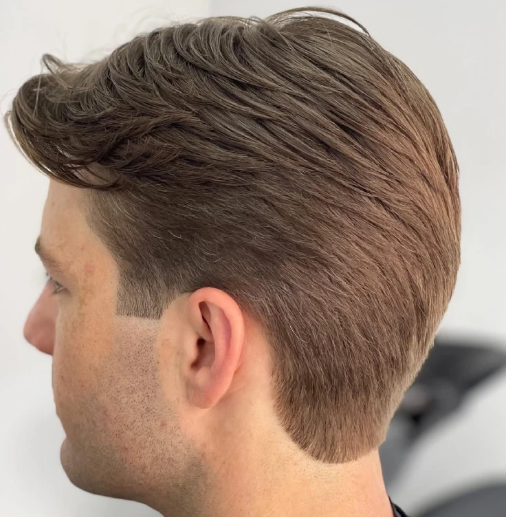 A classic, clean style with tapered sides and a natural finish. Suitable for all ages and hair types. Includes long haircuts.